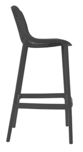 La estructura de 4 patas está inyectada en polipropileno, con una altura de 75 cm, proporcionando estabilidad y resistencia. Es una opción funcional dentro de las sillas en polipropileno para barras, cafeterías o áreas sociales.