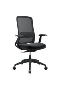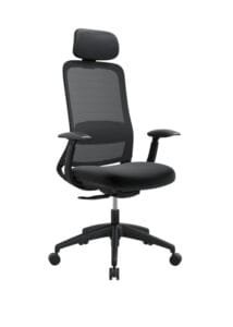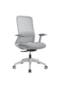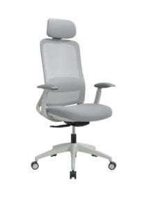 Espaldar: Alto con marco en nylon, tapizado en malla/poliéster negra/gris con soporte lumbar fijo en polipropileno.