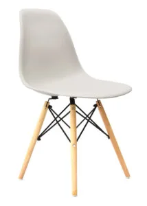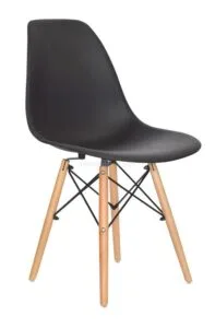 La Silla Eames es una silla de diseño fabricada con monoconcha en polipropileno, resistente y de fácil mantenimiento. Su estructura de 4 patas en madera incorpora refuerzos metálicos con acabado en pintura electrostática negra, lo que aporta estabilidad y durabilidad.